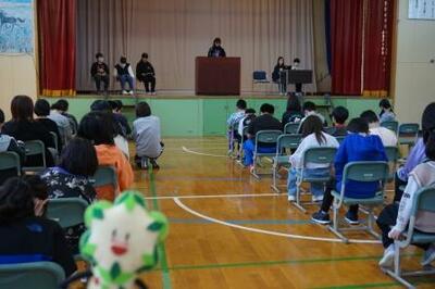 3時間目は、4年生から6年生までが集まって、児童総会が行われました。