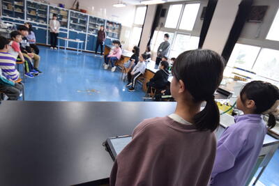 今日は、2時間目と3時間目に鬼志別小学校の3年生と4年生の授業参観に来校されました。