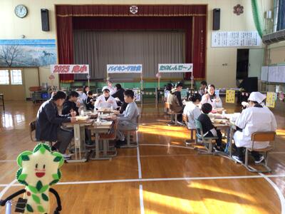 おなかいっぱい バイキング給食 投稿: 担当者 (12/12) 今日は1年生と6年生のバイキング給食でした 主食はワカメごはんと揚げパン 主菜は、トンカツ、春巻き、オムレツの3種類 2種類の副菜とフカヒレスープ、 それにデザートがクレープとロールケーキというメニューでした たくさんおかわりをして、おなか大満足でした Tweet -