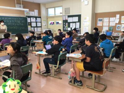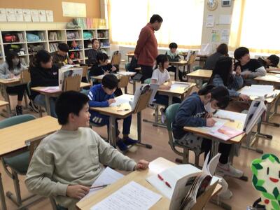 浅茅野小交流③ 投稿: 担当者 (11:15) 今年度3回目の浅茅野小学校との交流です 浅茅野小の児童が、それぞれの学年に分かれて 鬼志別小の児童と一緒に勉強します 1・2年生 体育館で鬼ごっこ 3年生 図工の作品を見合っていました 4年生 国語、みんなでプリントに取り組んでいます 5年生 英語、みんなでクイズに挑戦 6年生 算数の問題を解いています Tweet -