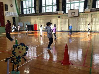 ラリーが続くようルールに工夫を加えゲームを行っていました